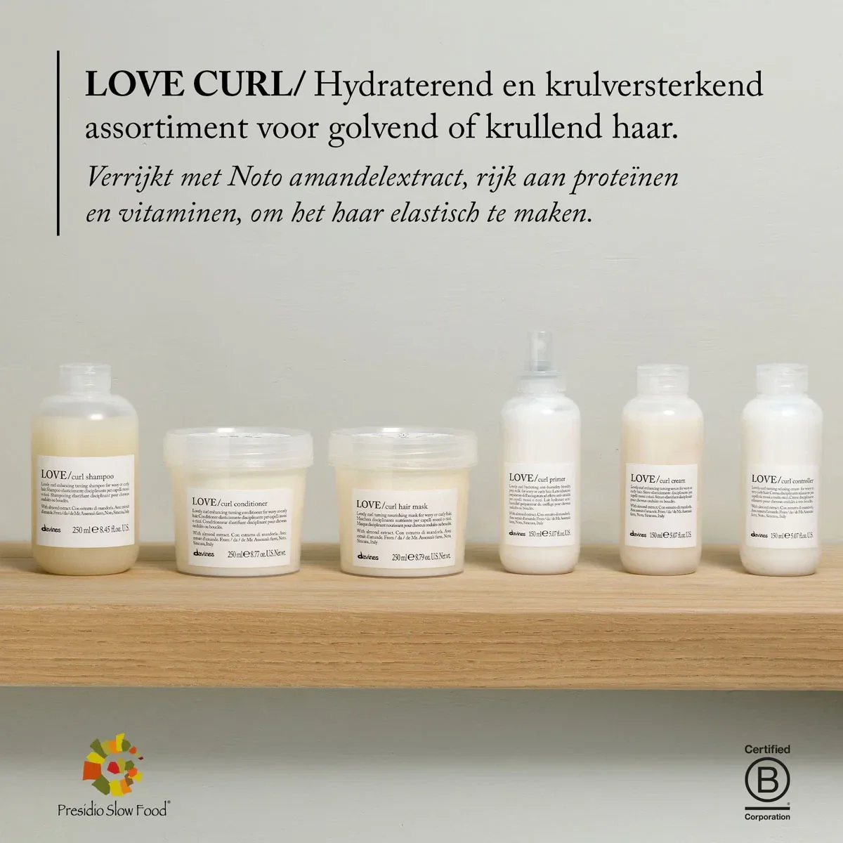 Breng aan op handdoekdroog haar, na gebruik van de LOVE CURL Primer. Gebruik het diffusser opzetstuk van de föhn om de gunstige eigenschappen van het product te versterken. Gebruik eventueel nog een stylingproduct wanneer stevige krullen of golven gewenst zijn.